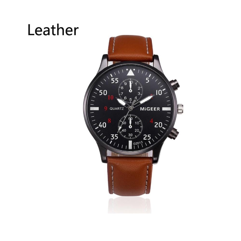 Men’s quartz wrist watch with round alloy case and PU leather strap. Stylish, precise, and perfect for business, casual, or daily wear.