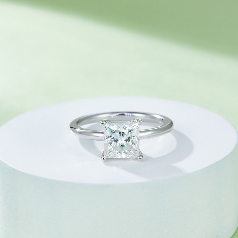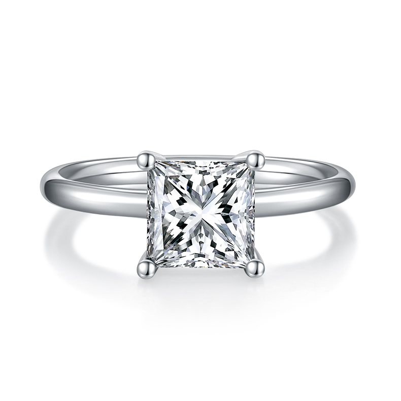 Square Moissanite Set With Top-quality Moissanite Luxury And Fashionable Light Luxury Jewelry Silver Ring S925 Silver Electroplated With Platinum